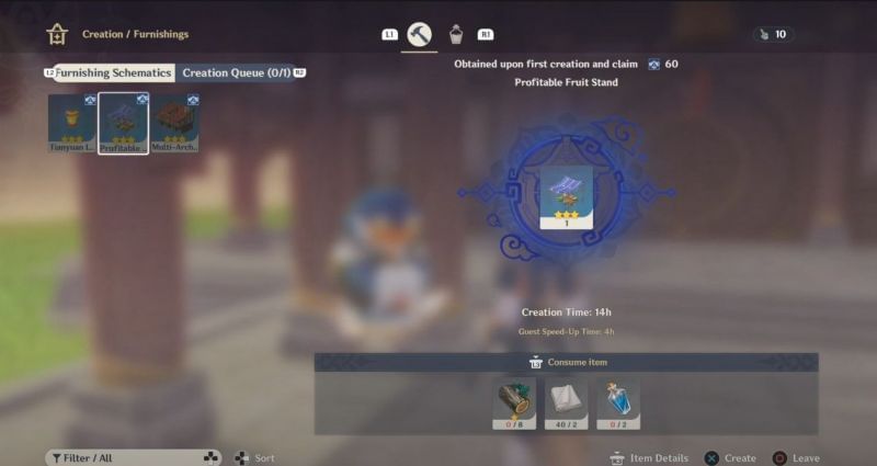 Furnishings are also similar (in some ways) to recipes in Genshin Impact. Players have to unlock the furnishing they're looking to build, like a player has to unlock a recipe by learning it first.
