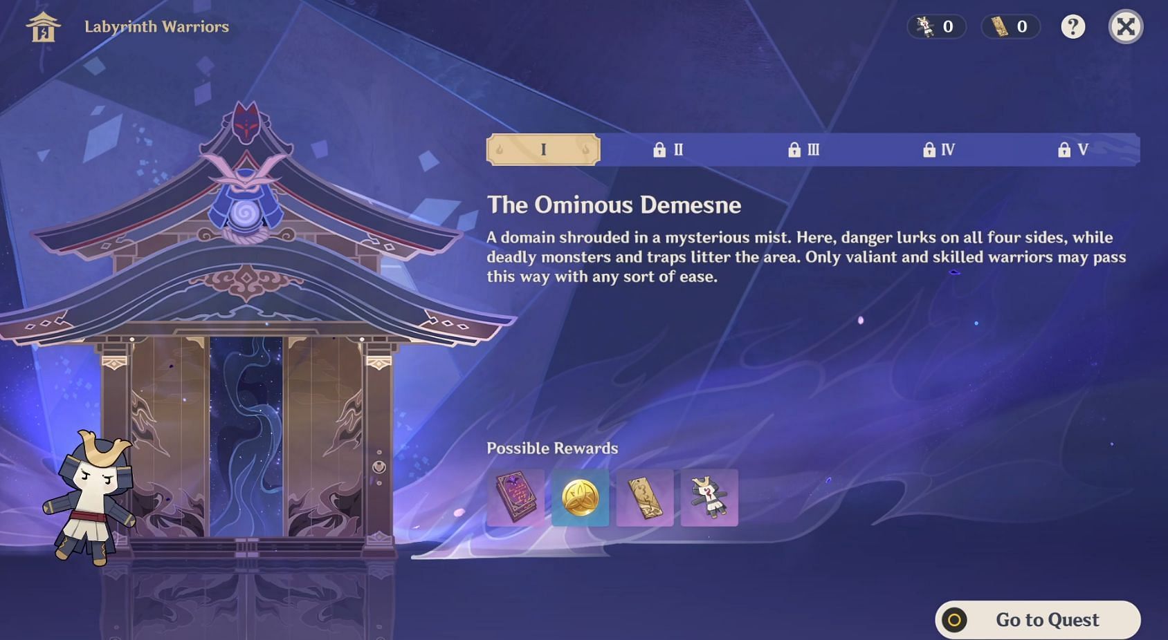 The event will start with the Event Quest, "A Tricky Situation", where it will guide you to the Mystic Onmyou Chamber. In the domain, there will be a total of five stages. Starting from the first day of the Labyrinth Warrior event, a new stage will be unlocked every three days.