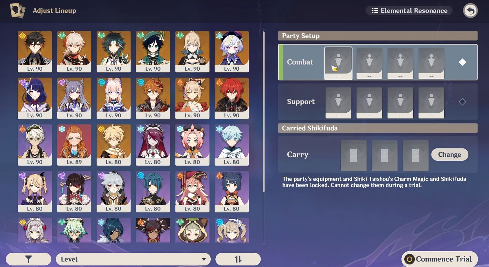Once you enter the domain and choose a stage, the game will ask you to create two teams and choose three Shikifuda. The "Combat" party will be your initial party to fight enemies in the chamber while the "Support" party is a substitute team where you can switch to any character you want later in the domain.