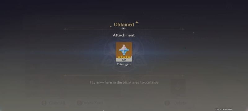 - Players can now use the "Claim all" option in their mail to transfer the Primogems and other rewards to their inventory.