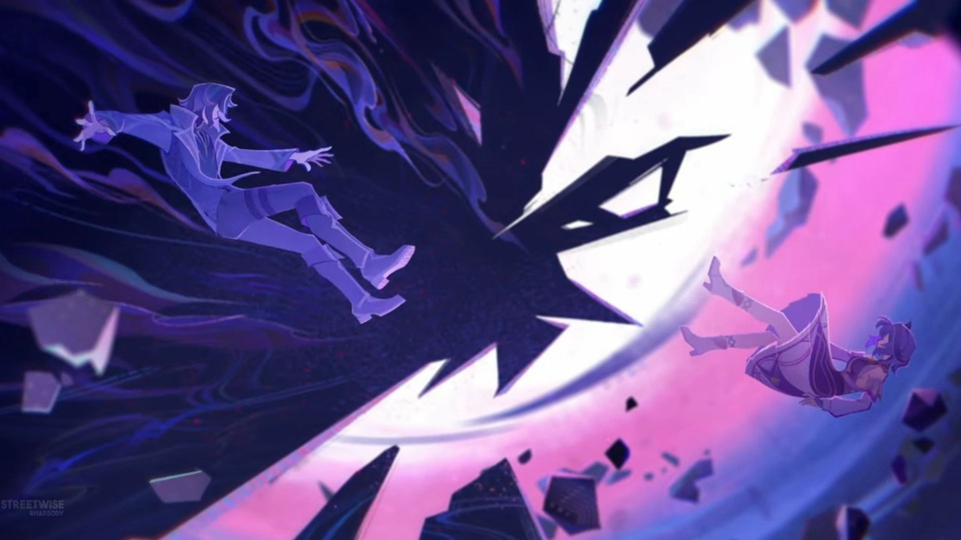 With their help, Columbina was able to absorb his power, allowing her to bind him in the physical world. She opened a portal (Moon Gate) in the sky and started pushing him towards it. He mocked her at that moment, convinced she couldn't open it for long. Columbina responded by saying she wasn't the one who was holding it open and sent him forward.