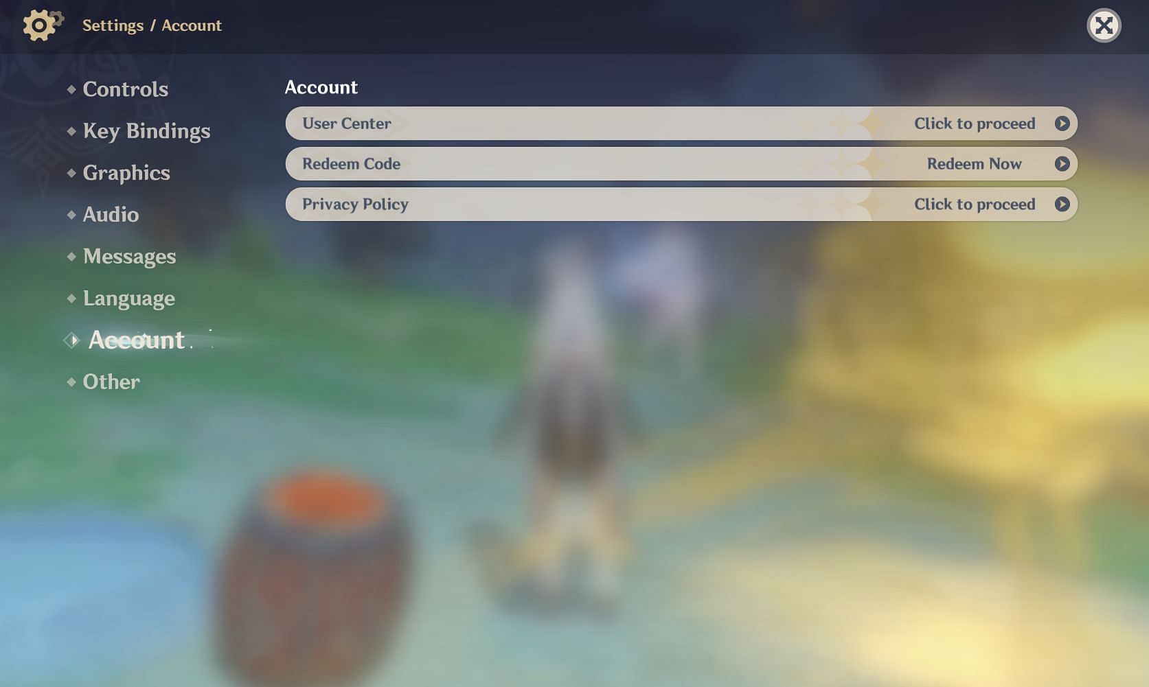 Alternatively, Travelers can boot up Genshin Impact and enter the Redeem Codes there. Once everything loads, pause the game and head to settings. From there, go to "Account" and then click on "Redeem Now."