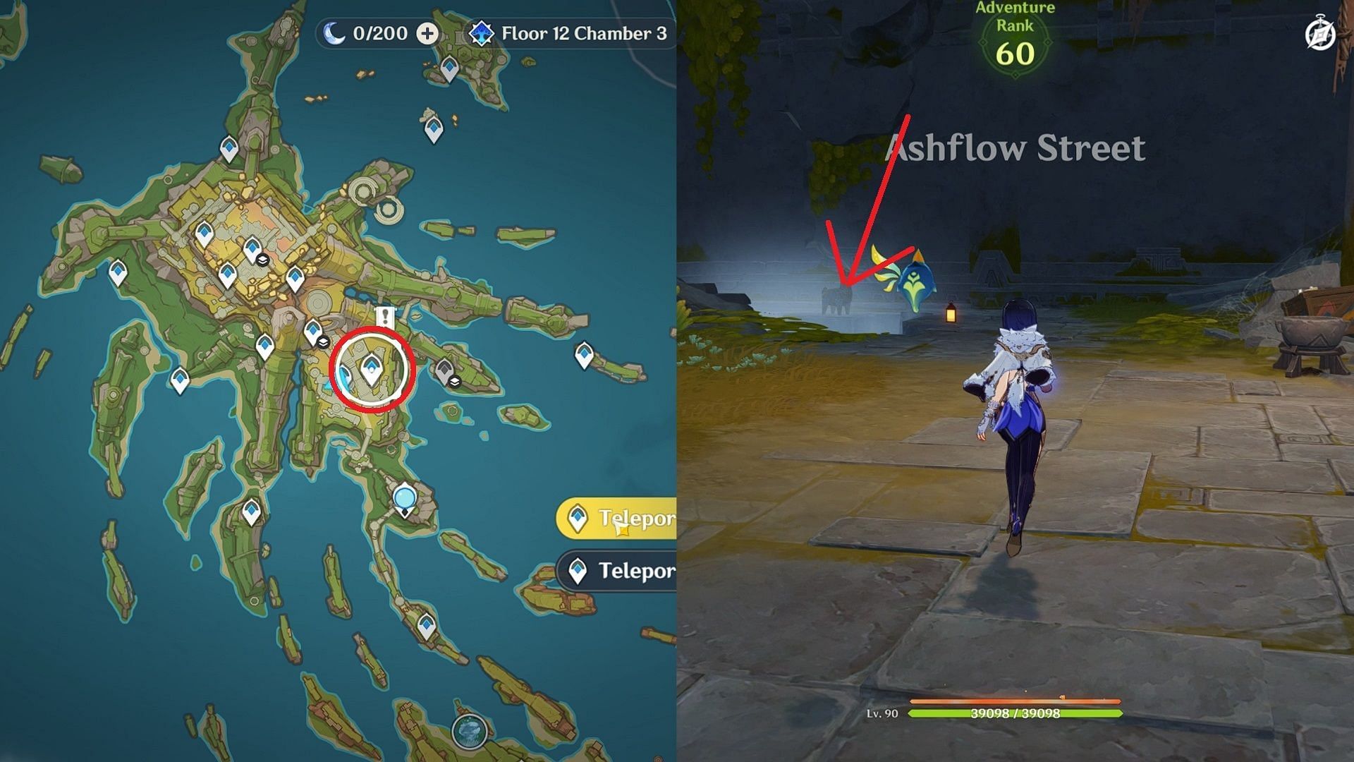 Start the quest using the teleport waypoint in Ashflow Street and go straight before jumping down from the hole to get to the Well of Seven Flames. Next, go west to find a deep hole with a Common Chest nearby. Quickly collect the chest and jump in.