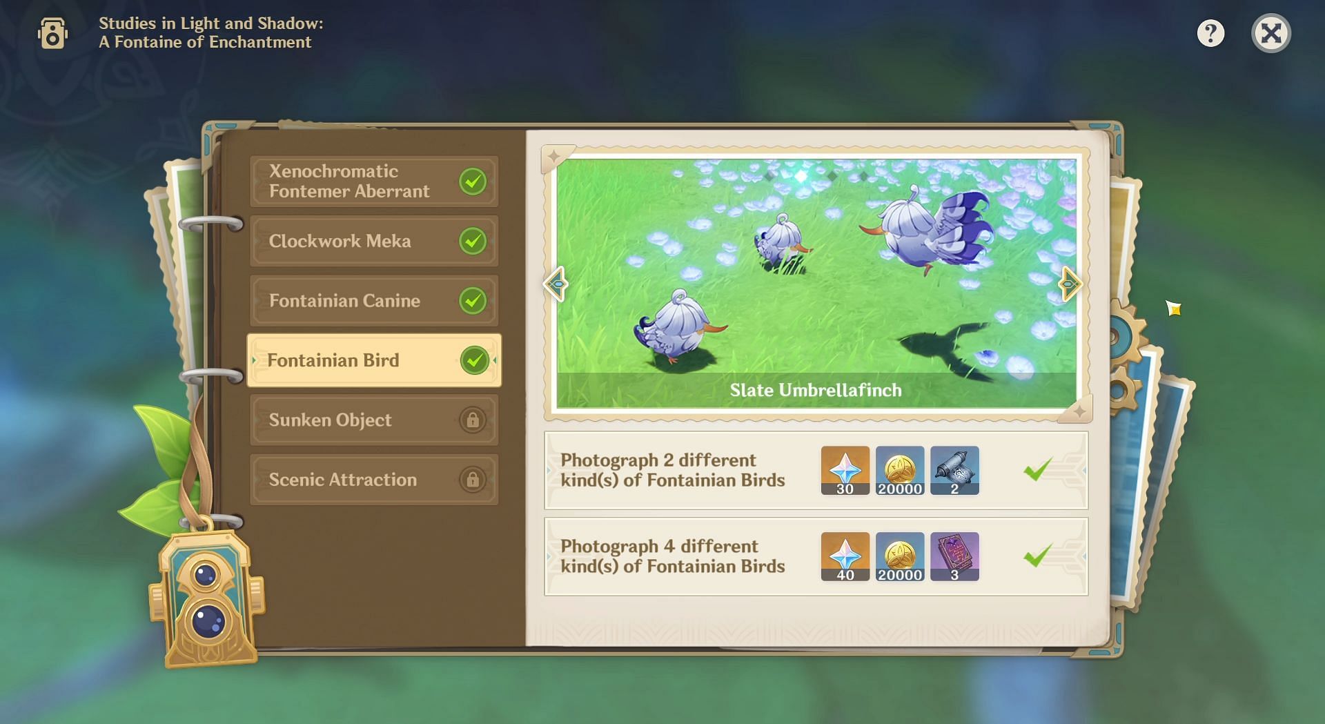 Completing the day four tasks of the Studies in Light and Shadow event will give you 70 Primogems and a few other in-game items. This article will showcase the two best spots where you can take pictures of four different Fontainian Birds in Genshin Impact.