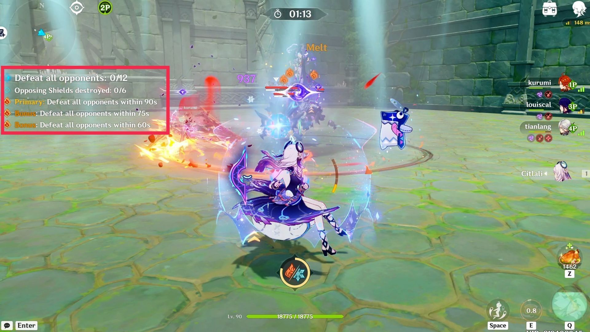 - Bonus Objective #1: Defeat all opponents within 75 seconds