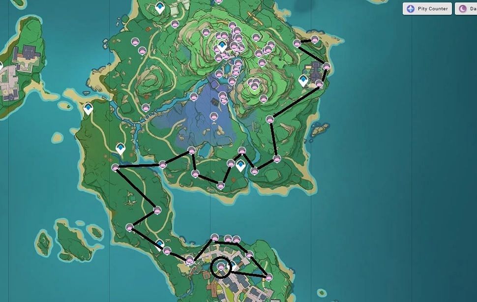 This is the final route for this farming guide. It is recommended to start by teleporting near the Domain: Court of Flowing Sand, located on the north side of Mt. Yougou.