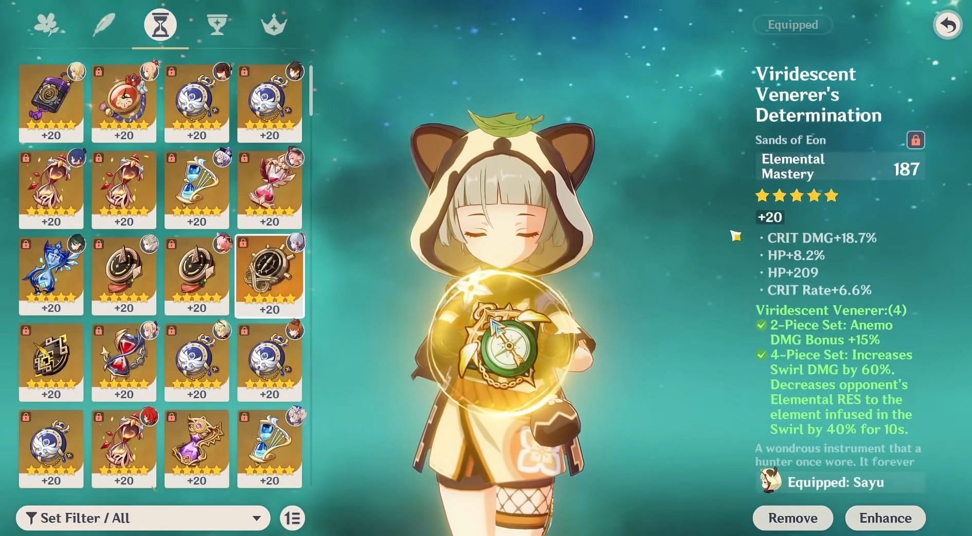 Sayu's Sands of Eon can ideally use either ATK% or Elemental Mastery in Genshin Impact.
