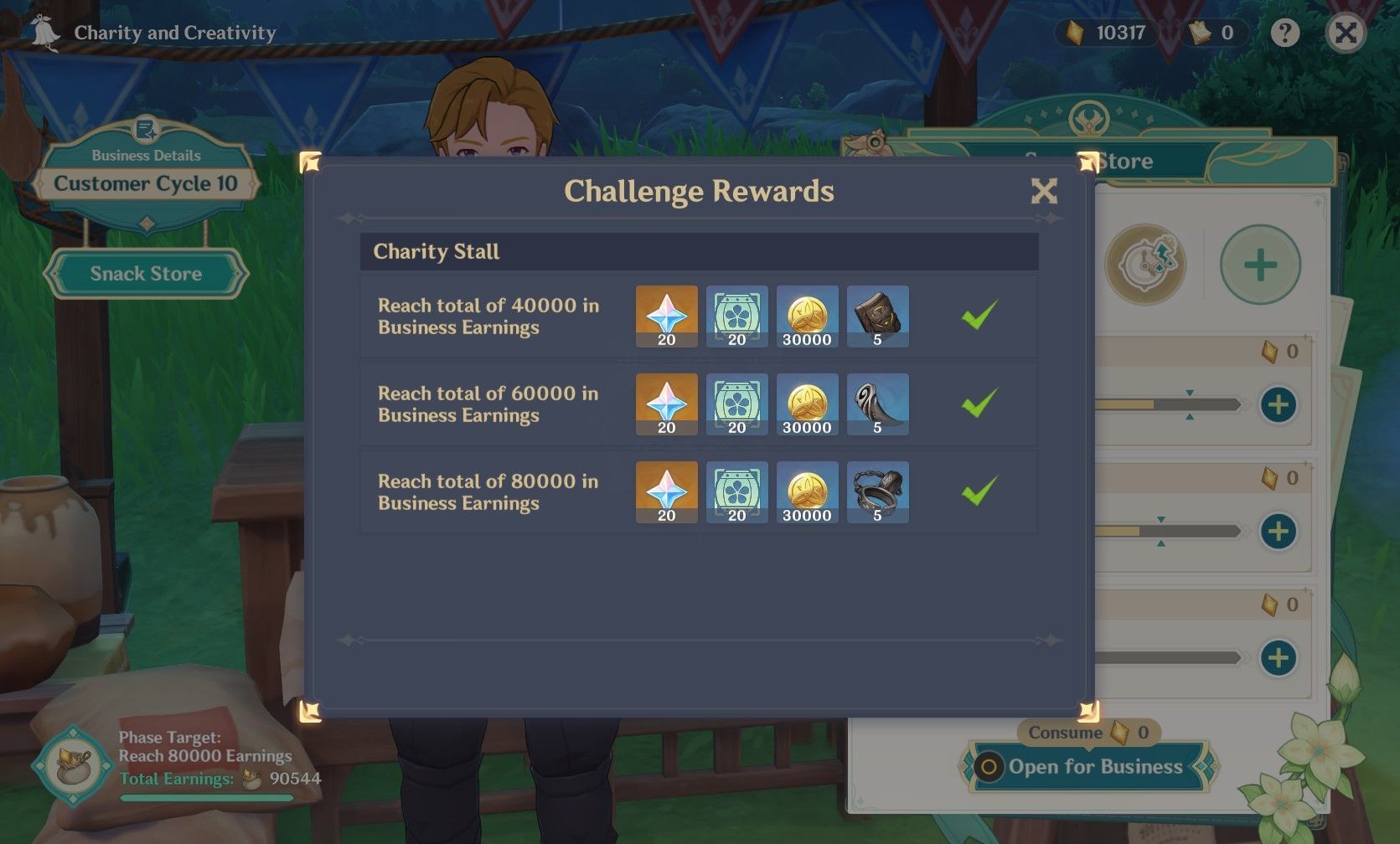 Genshin Impact players should have reached the 80,000 in the Business Earnings portion of the Charity Stall event.