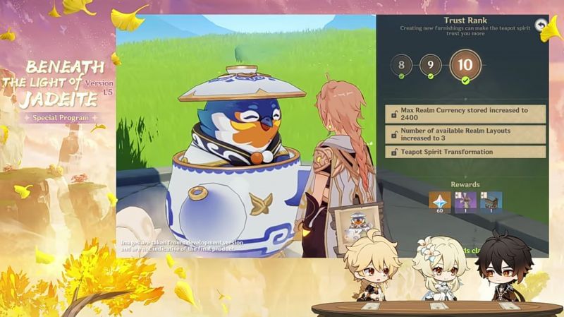 Players will be able to choose one realm out of the available three when they first enter the Serenitea Pot. More realms can be unlocked after players accumulate enough Trust Rank with Tubby.