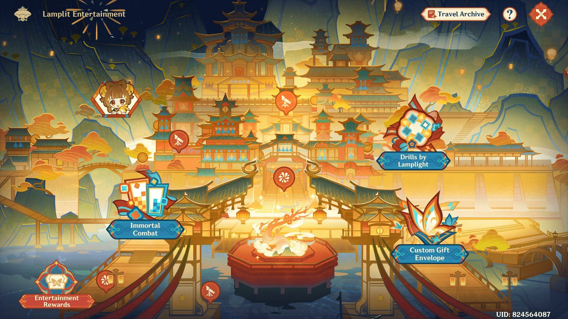 This mode involves exploring Liyue Harbor to interact with festive toys and complete specific tasks. Activities include activating Fortune Coins, using Launch Tubes to display specific patterns, and utilizing Sightseeing Scopes to discover scenic views.