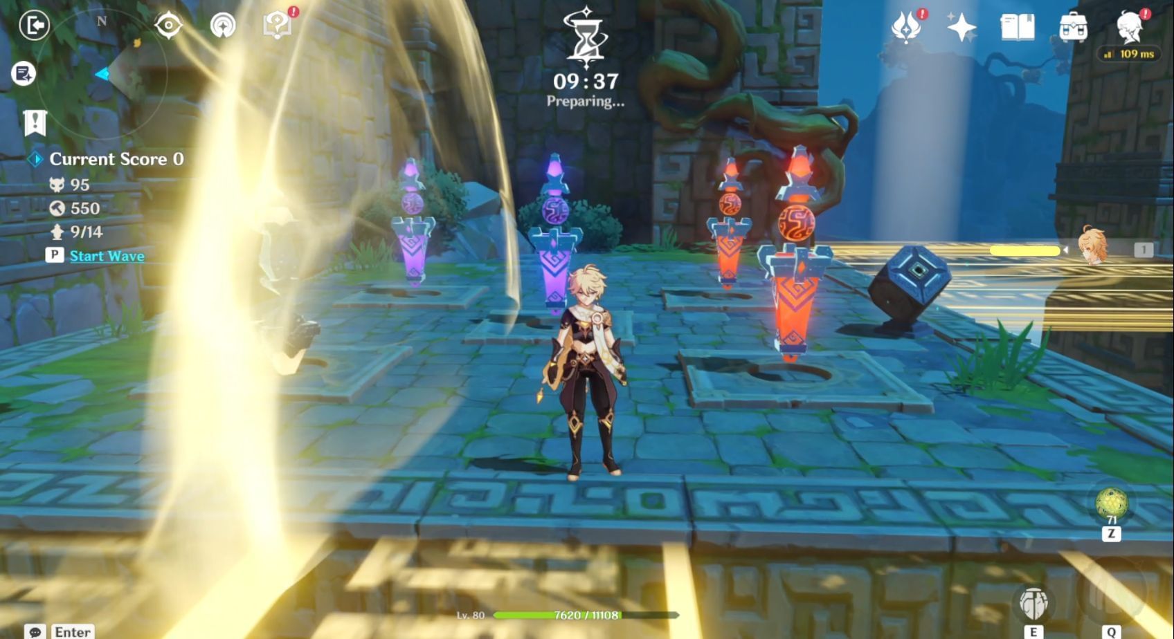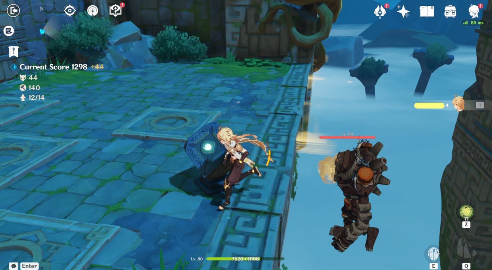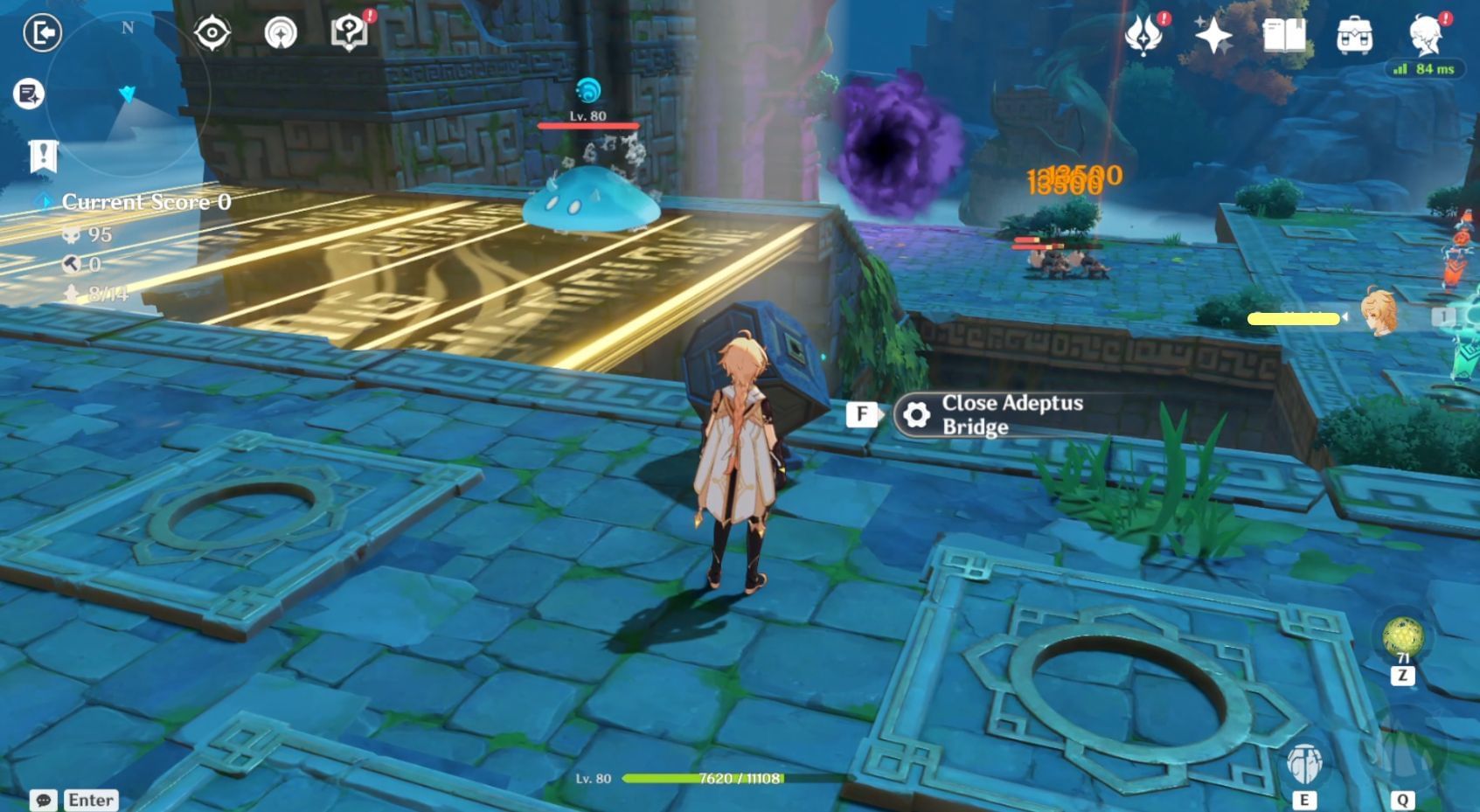Five waves of Slimes will cross the bridge. When the Slime reaches the bridge, players need to close the Adeptus Bridge so the enemy will fall into the void. Note that since the bridge has a cooldown, Travelers need to go back and forth to the second Adeptus Bridge and use the same tricks.