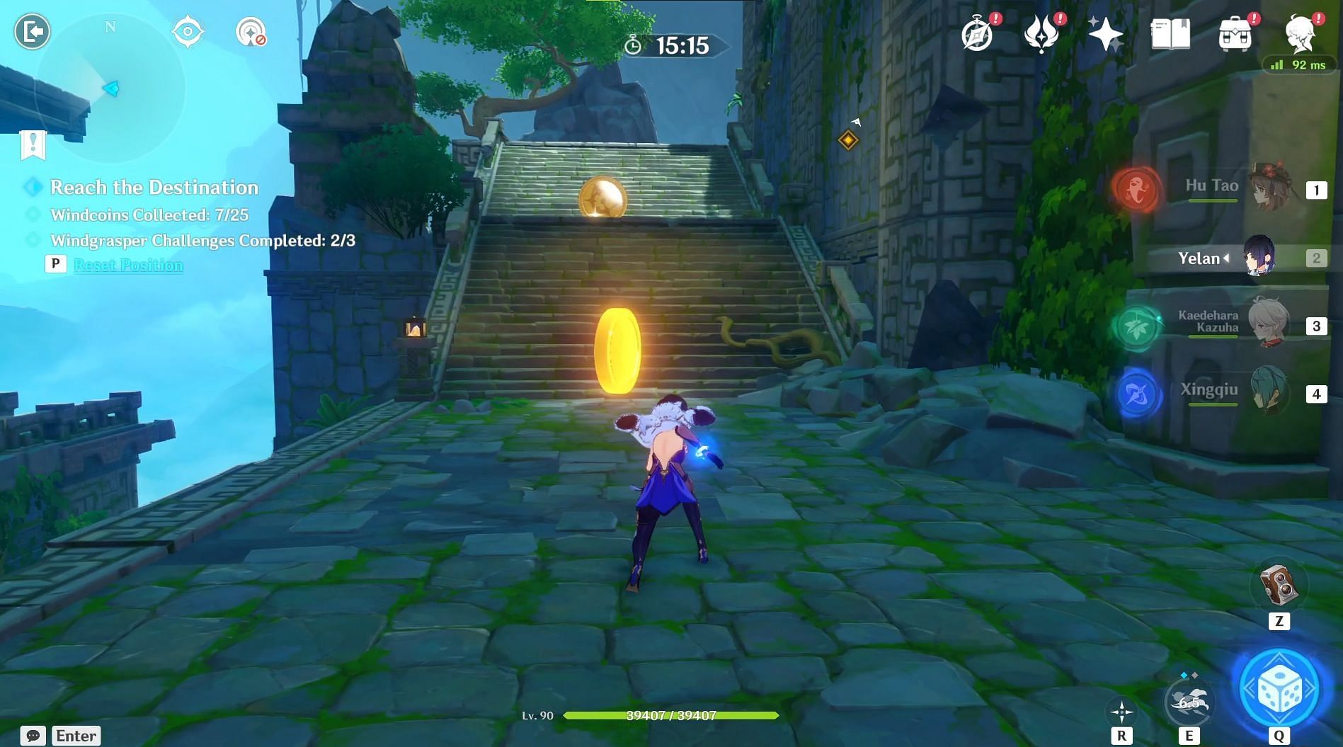 This is where Genshin Impact players will reach the Driftwind Platform from before, and they need to wait on top of it until the Snagwind Nexus below the platform activates and raises the platform so that they can reach the remaining Anemo particles and a Windcoin.