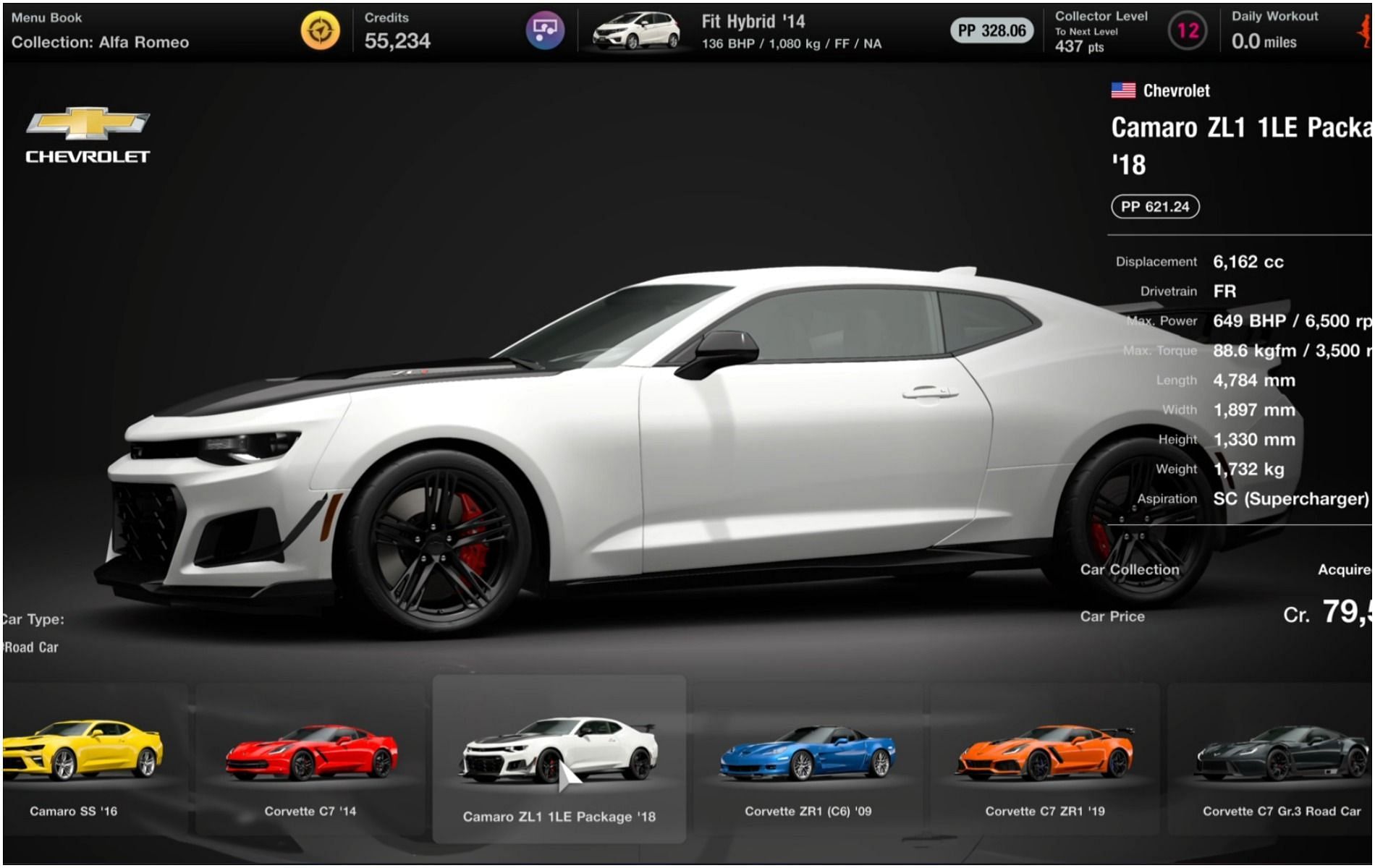 That would be the Camaro ZL1, which costs 79,500 credits. The Camaro, after a couple of upgrades, is a ferocious car for use on the American tracks of Gran Turismo 7.