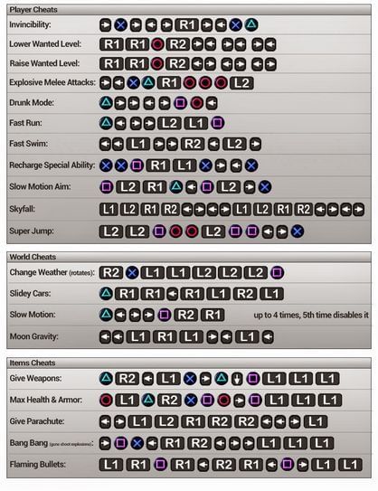 To decrease Wanted Level: R1, R1, CIRCLE, R2, RIGHT, LEFT, RIGHT, LEFT, RIGHT, LEFT
