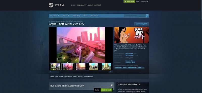 To download GTA Vice City from Steam, players will need an account on Steam. They will also need to download the Steam app on their PCs.
