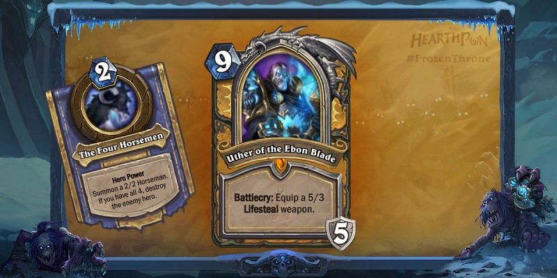 The Death Knight hero for Paladin is not as strong as Hunter or Mage, but Exodia Paladin is a deck that sees play. The Death Knight is very powerful on its own, a 2/2 hero power is better than a 1/1 in many ways. Destroying the enemy hero by bringing on all the 4 horsemen is an insanely fun way to guarantee a kill on the enemy. Uther of the Ebon Blade will definitely be missed.