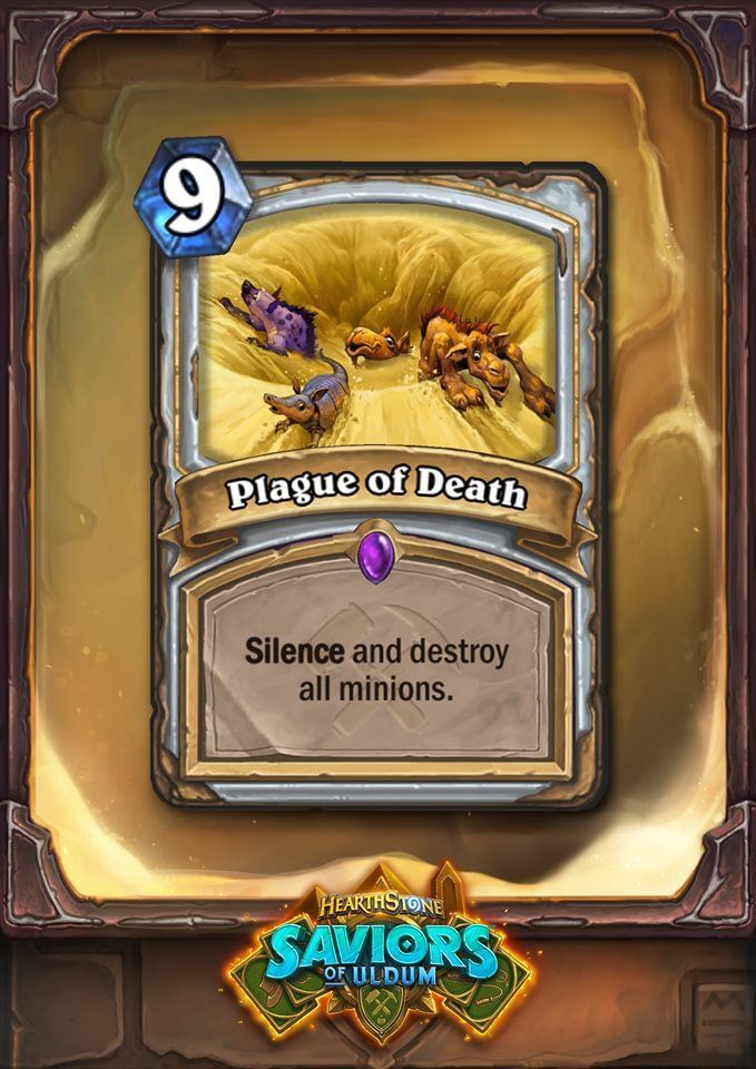 Every class will get a "Plague card" that affects all minions on the board. We have only seen the Plague card for Priest, which is very powerful, especially since Priest does not have very great removal right now. We can expect expensive and strong power level Plague cards with other classes.