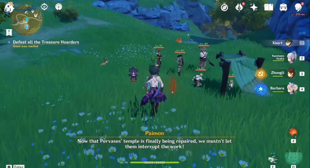 Amidst the Traveler and Xiao's conversation, you will hear a scream for help near your current location. Help Wang Ping'an to continue the quest. The enemies near him are only two Hilichurls, which are not that difficult to deal with.