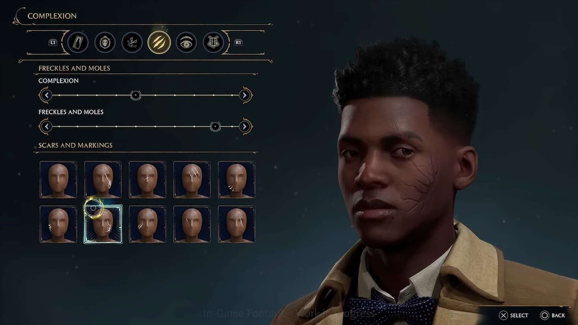 You can proceed to add scars and markings from the complexions tab. It also includes a separate slider to add freckles or moles to your avatar; however, there is no infamous Harry Potter scar to choose from.