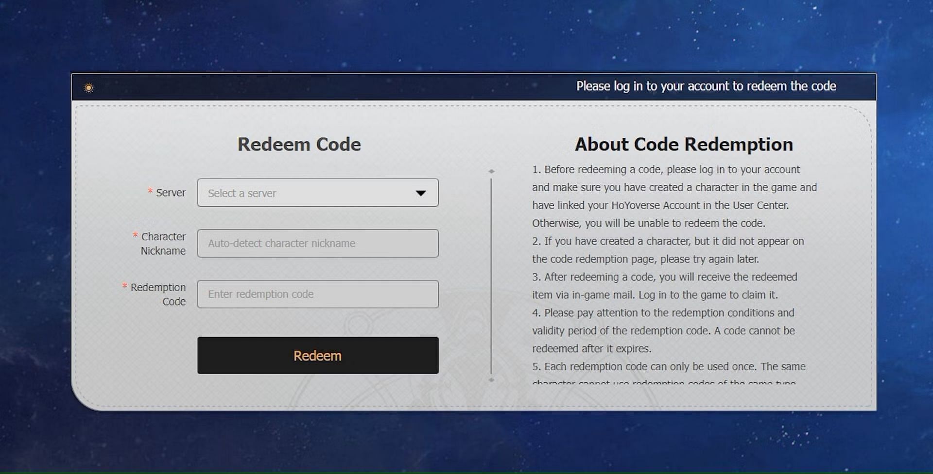 Alternatively, you can also redeem these codes without logging into your game via Honkai: Star Rail's official website: