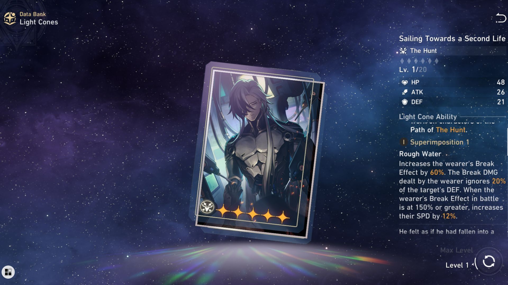 The Sailing Towards a Second Life is the best choice for Boothill as it is his BiS (Best in Slot) Light Cone in Honkai Star Rail. The unique effect of this Light Cone, Rough Water, boosts the wearer’s Break Effect. Additionally, the user ignores the adversary’s DEF when dealing Break damage.