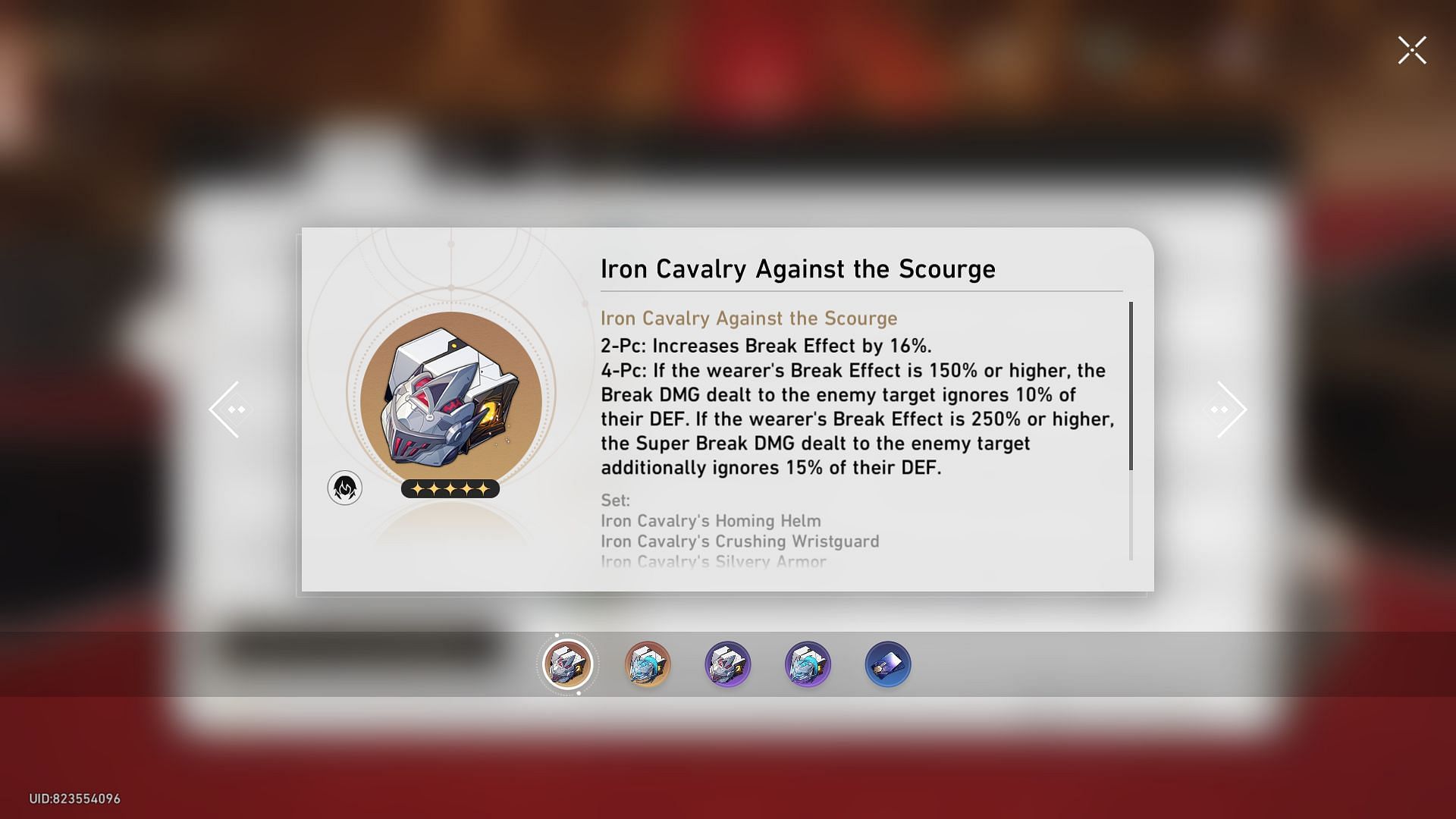 The 4-piece Iron Cavalry Against the Scourge set grants Rappa a decent amount of Break Effect stats while also boosting her BE and Super BE (Break Effect) damage. Additionally, it helps the Galaxy Ranger neglect a portion of the opponents’ DEF while hitting them.