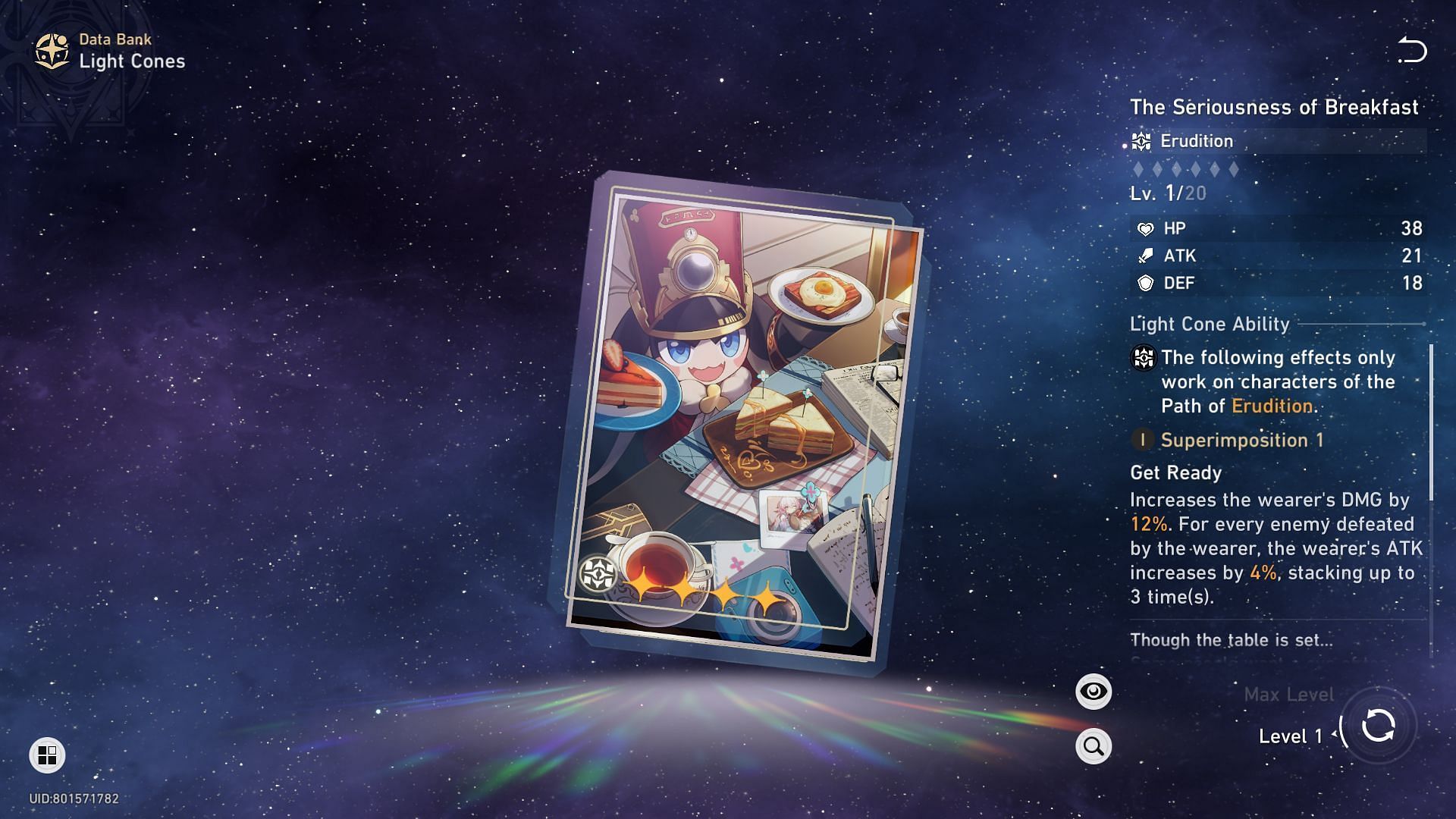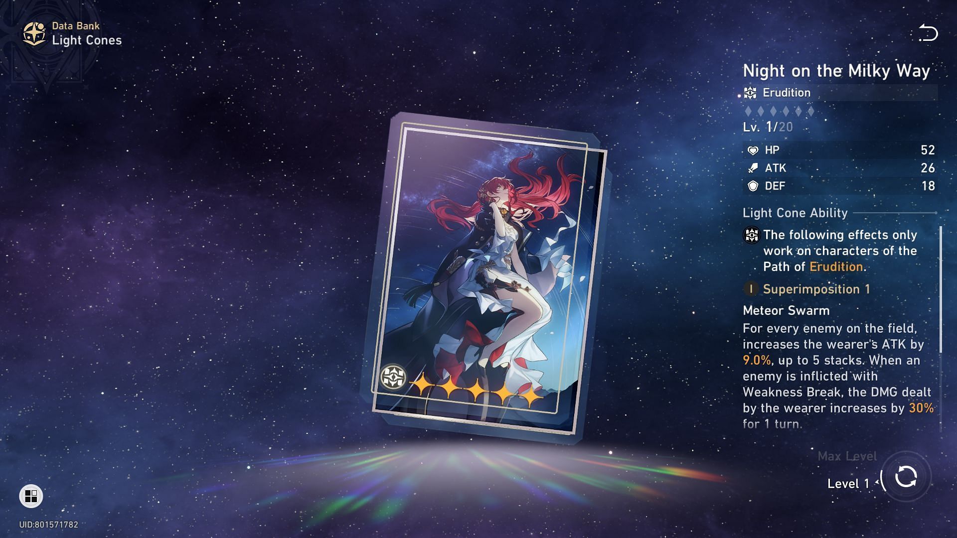 Consider using the Night on the Milky Way to build Rappa if you aren’t summoning her signature option. The 5-star Light Cone is equipped with 9.0% ATK of up to five stacks for every enemy available on the battlefield.