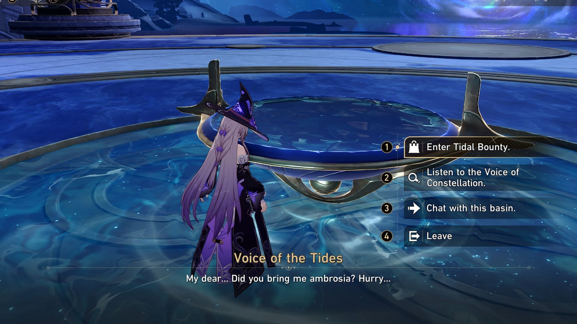 To offer Celestial Ambrosia to the Vortex of Genesis, simply walk up to it, interact with it, and select the "Enter Tidal Bounty" option. You will only be able to make an offering when you have sufficient Celestial Ambrosia in your inventory.