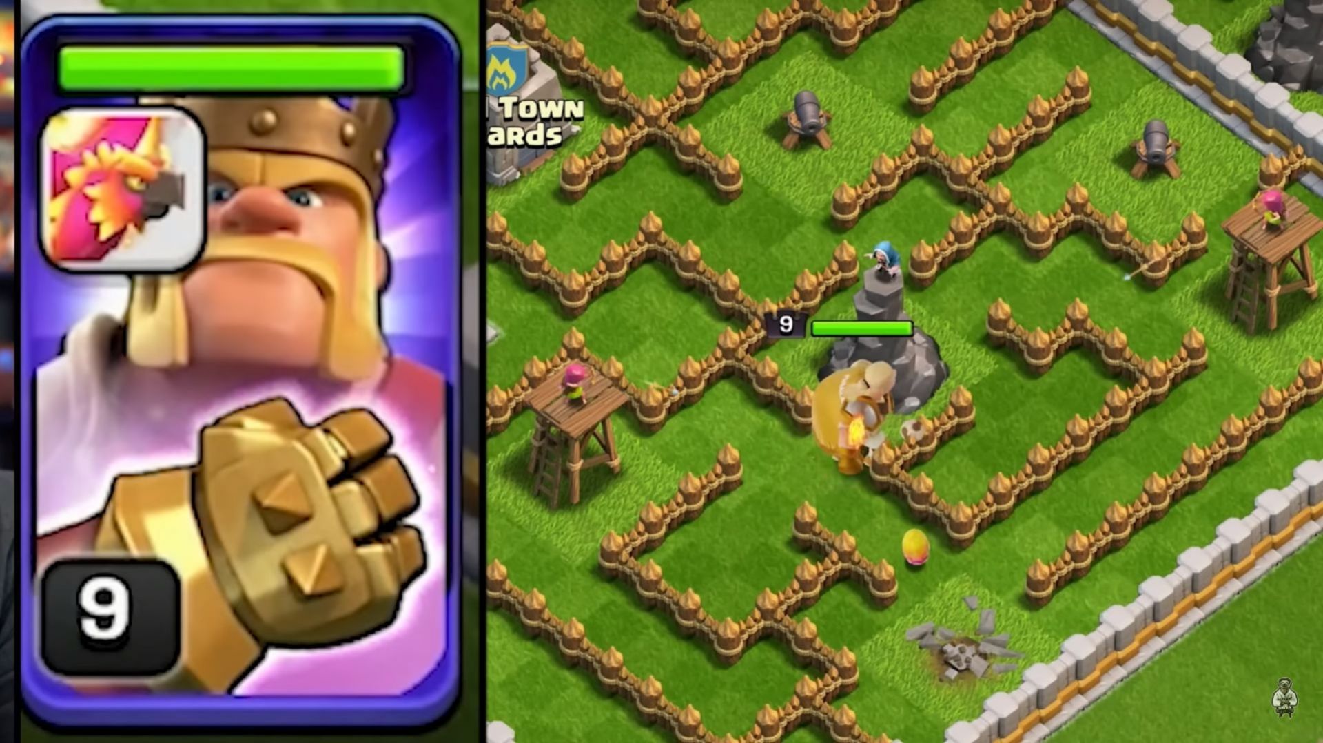 After destroying the Wizard Tower, guide the Barbarian King to the Air Defense on the south side of the base. At the same time, guide the P.E.K.K.A. towards the Air Defense north of the base, and if he fails to reach it on time, use another Yellow Card Spell to disable that Air Defense again.