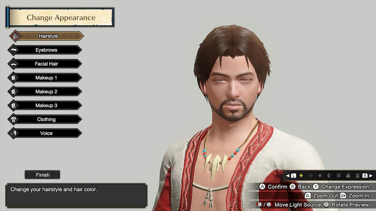Choose Change Appearance and it will take you to the character edit screen. This screen allows you to change your character's hairstyle, eyebrows, facial hair, makeup, clothing, and even the voice.
