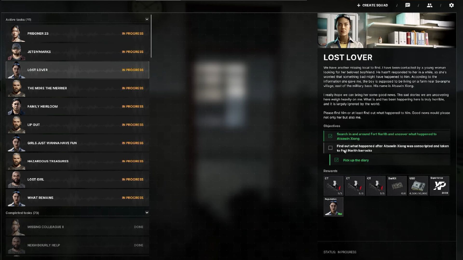 The mission called Lost Lover in Gray Zone Warfare is provided to you by Lab Rat. The quest has a total of three items on the list that you need to complete. This investigative mission takes you to the Fort Nartith area, where you need to find details about Atsawin Xiong, dig up some intel on the barracks, and then find a journal from the target location. Although the objectives themselves are quite easy to complete, the difficulty of this mission rises due to the heavily armed guards in the region. You can get a healthy amount of rewards from Lab Rat after completing this mission.