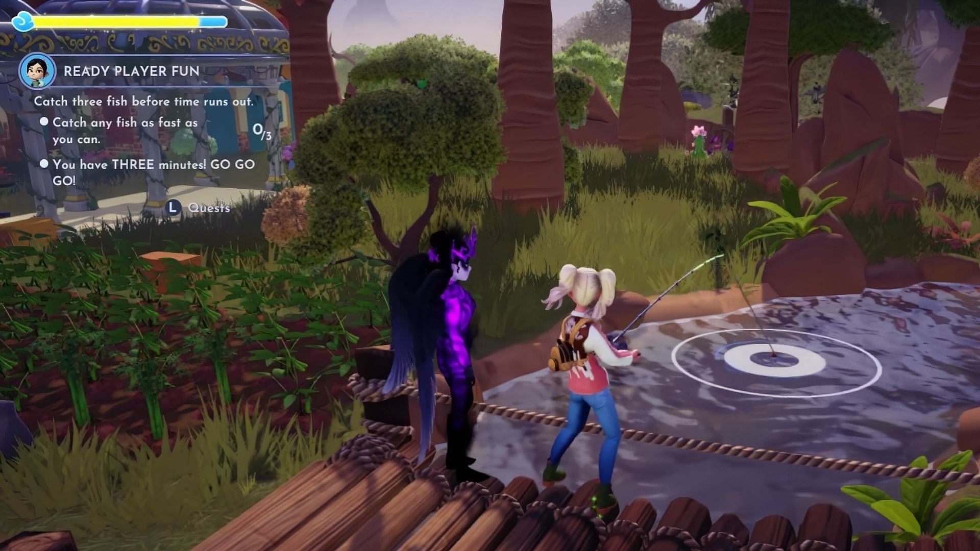 Head to the river in Sunlit Plaeau to start the challenge. Once you catch three fish of any species, you will win the challenge and Vanellope will thank you for showing her fun activities around the Dreamlight Valley.