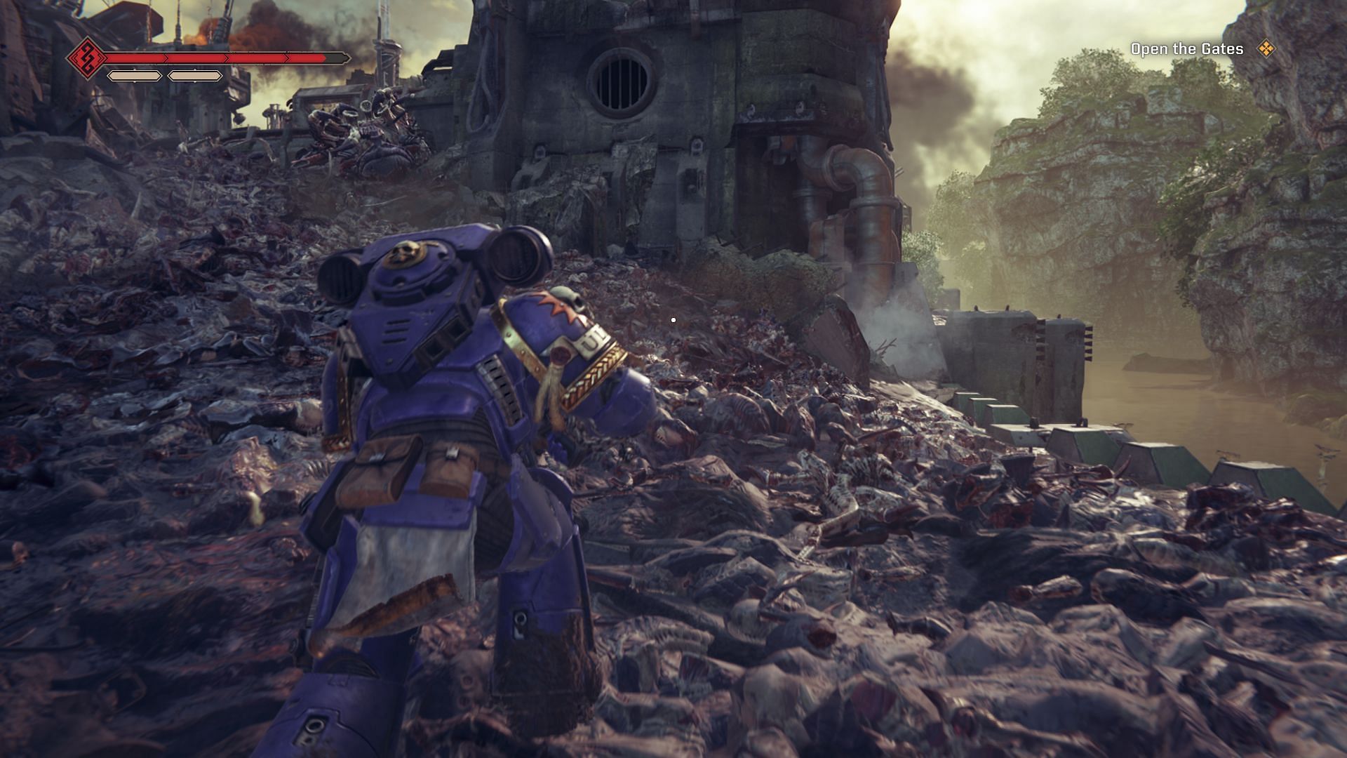 After eliminating mobs for a while, you will get a prompt to open the gates. Advance through the mobs and keep walking straight. After reaching the large, dark gate, you must turn right. Walk up the area and keep clearing and eliminating all the enemies in your vicinity, aiding you in completing the Skyfire Campaign Mission in Warhammer 40k: Space Marine 2.