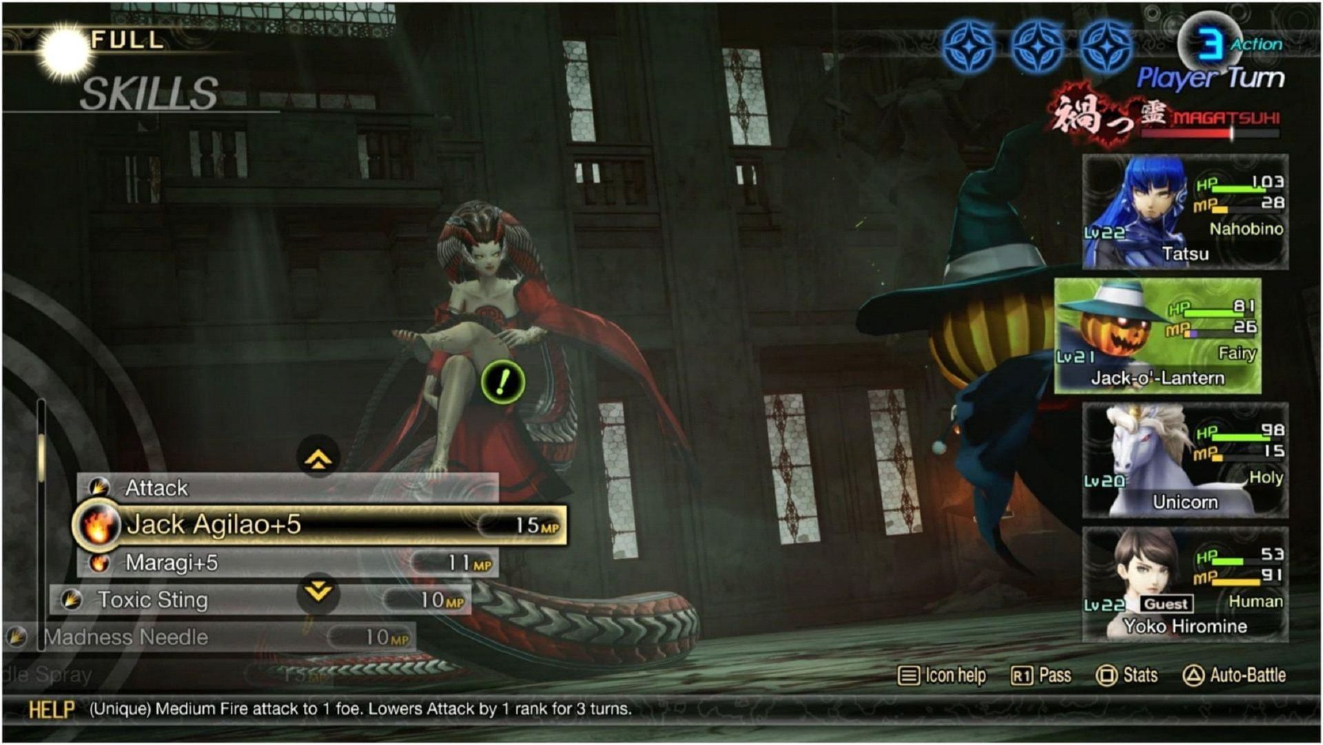 You want as many people in your party to have access to Fire spells as possible. For example, I used Essence Fusion to give Nahobino Maragi, so he could deal fire damage too. It’s also a great time to make sure you have access to Jack-o’-Lantern, who has two incredible fire skills.