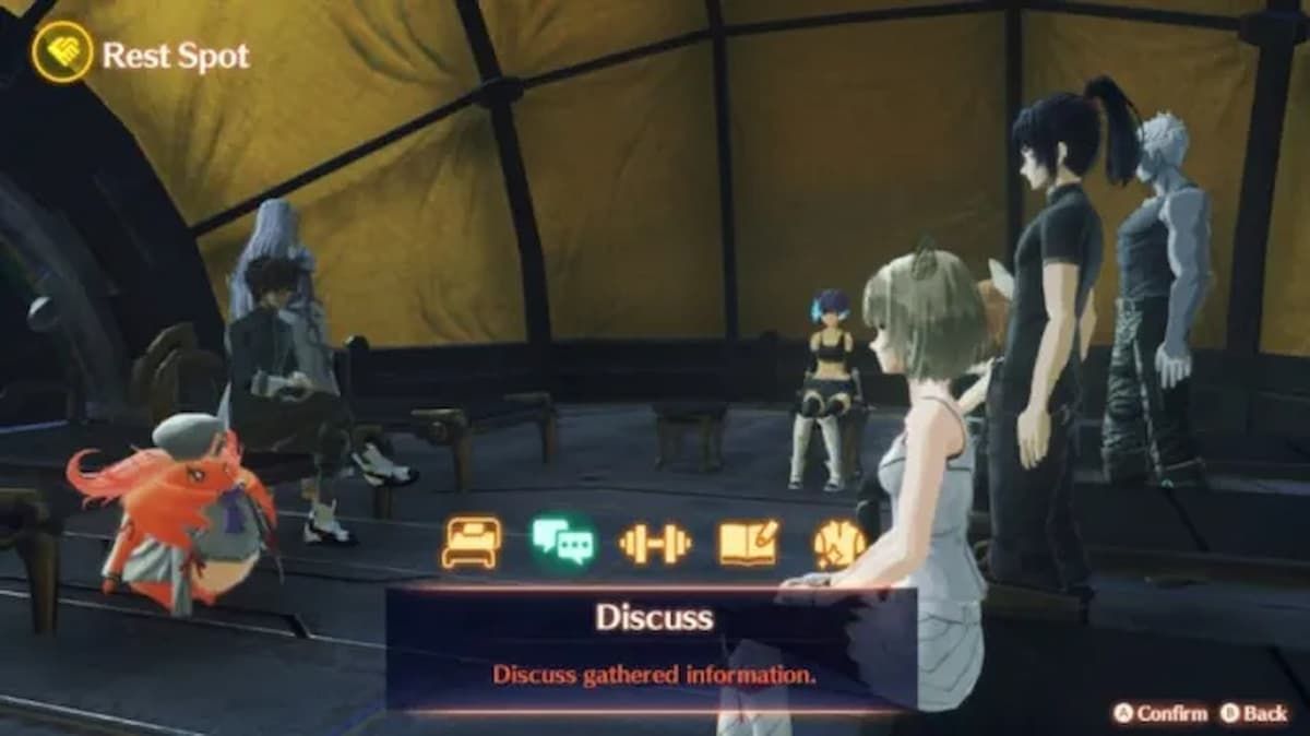 The goal is to see what the other party members think about the information learned. Travel to any Rest Spot, and a new option can be selected that isn't usually there when information hasn't been gathered.