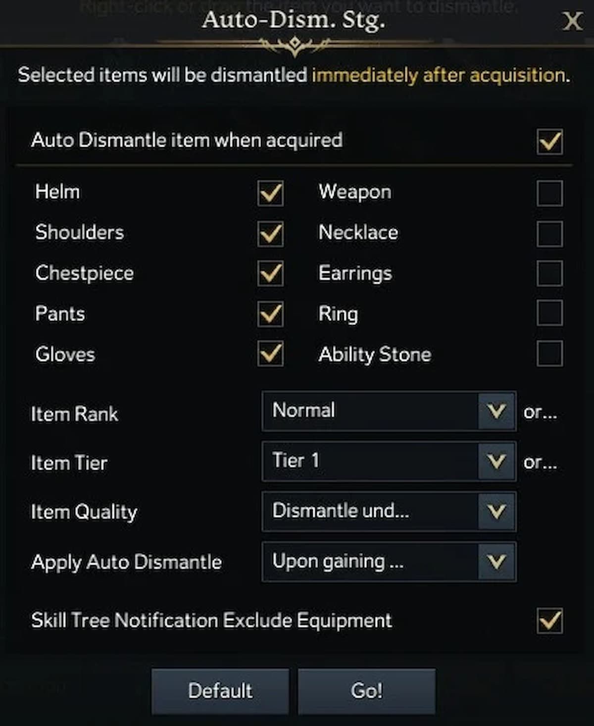 Additionally, there is an auto-dismantle feature in Lost Ark. With it, you can dismantle lower rarity and lower level items without having to raise a finger of your own.