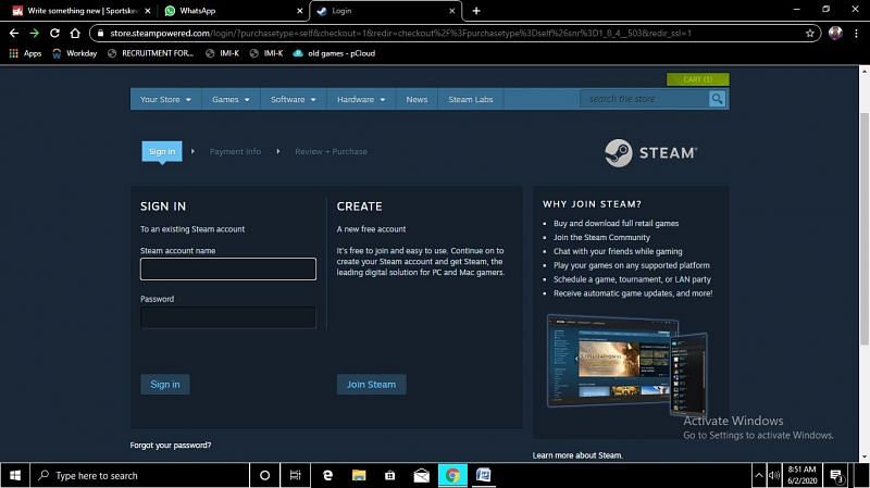 5. Create an account on Steam, if you do not have an account already.