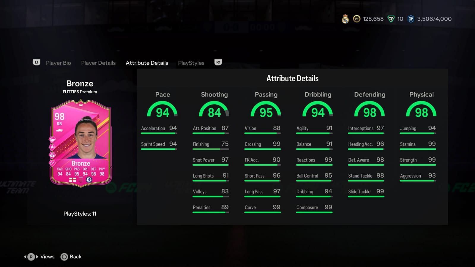 Not only does the EA FC 24 Lucy Bronze FUTTIES card possess the stats and attributes required to be an elite-tier right-back on the virtual pitch, but she also has amazing defending and passing PlayStyles, as well as a combination of five-star skills and a five-star weak foot. This makes her a versatile addition to any squad in Ultimate Team, making this objective worth grinding.