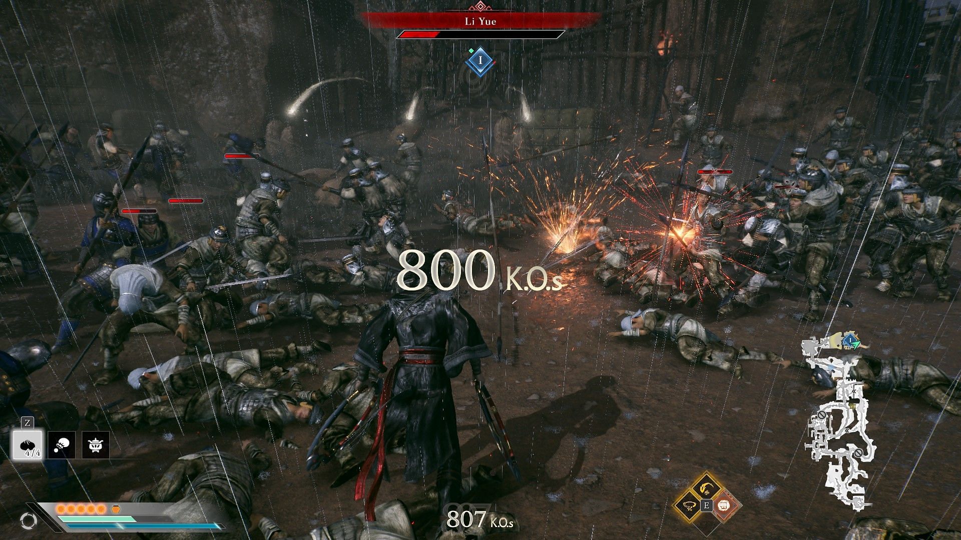 Foot soldiers are easy to kill, and effectively handling weapons like Wheels, Podao, etc., can allow you to take out a big group easily. You can also use your Musou arts that deal a devastating blow in a large area and can easily wipe out a large wave of soldiers.
