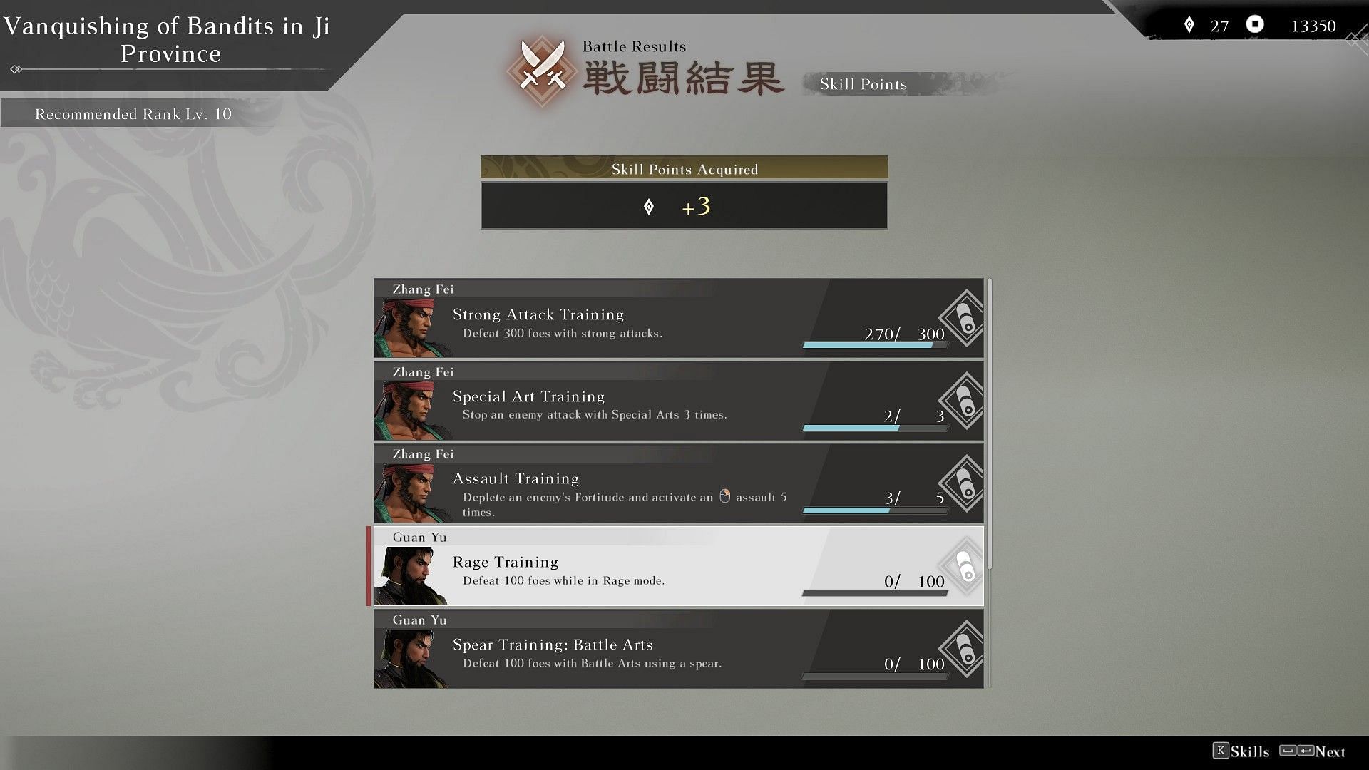 Getting more elimination during a battle is a great way of farming Skill Points. Every 100 KOs grants you 3. If you are facing a massive army during the campaign battles, unless your objectives are in dire straits, it is recommended that you try to kill the foot soldiers before targeting the commanders.