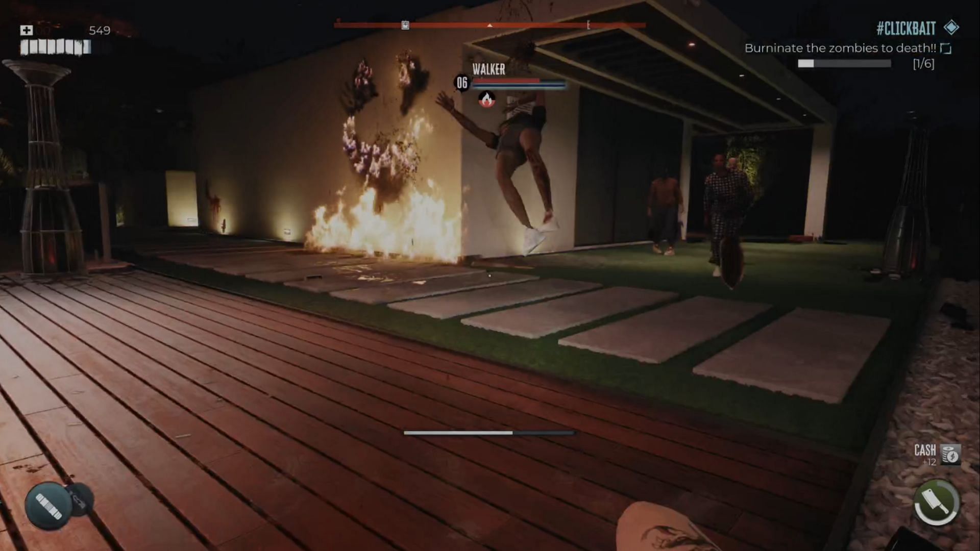 Any character can use the basic kick function, but Survivors that have a jumpkick (like Dani) can boot them much farther. It can be a bit tricky, but zombies never stop spawning until you’ve completed the burning portion of the side quest.