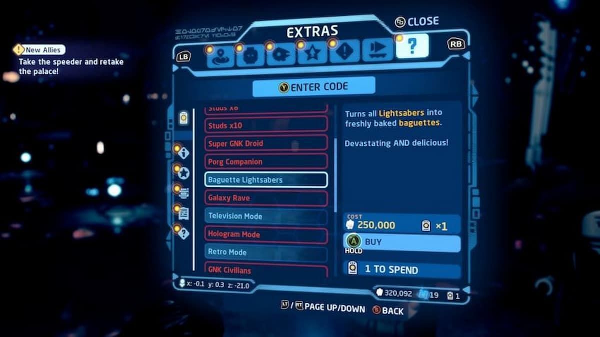 How to unlock the Baguette Lightsaber mode in Lego Star Wars: The Skywalker Saga