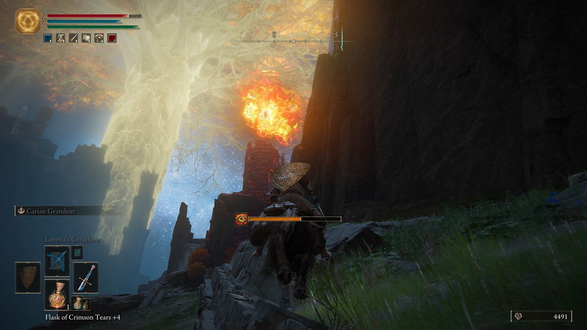 Gamers should hug the base of the eastern mountain and carry on. At some point, they'll see a tower with a wild flame sitting atop — it causes Madness.