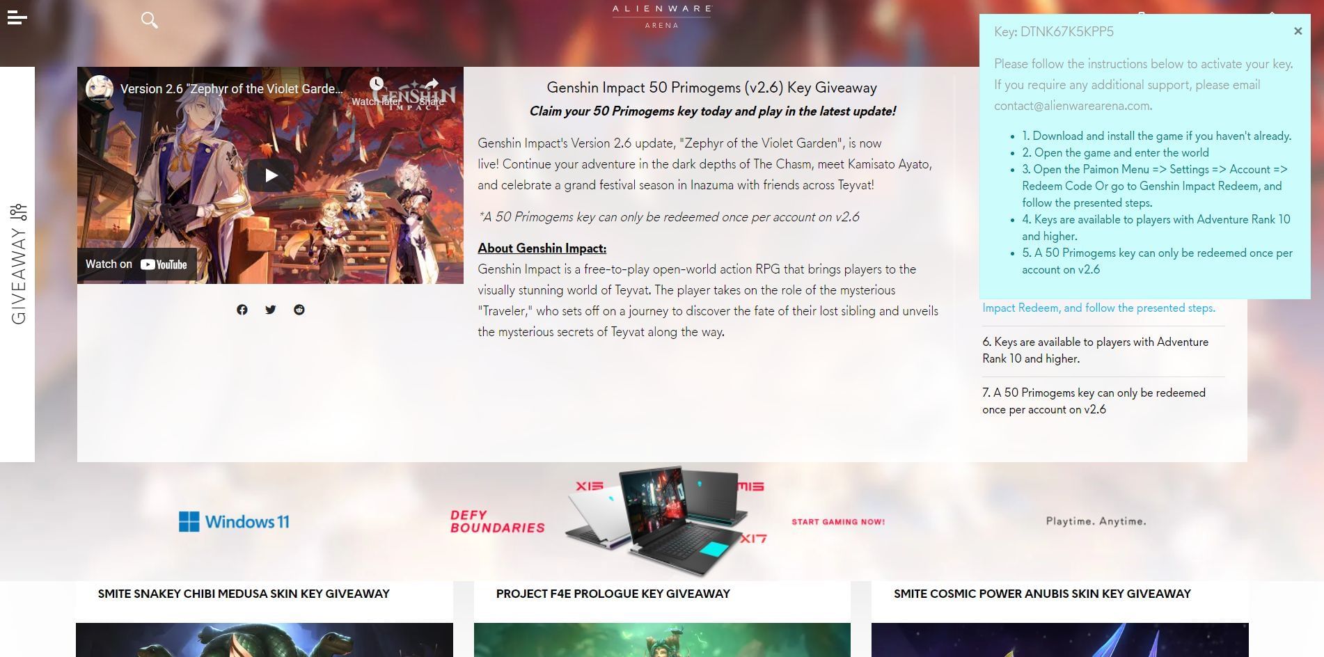 Alienware is currently holding a giveaway of 50 Primogems for every gamer who signs up with Alienware. This article will guide players on how to generate the redeem code from the Alienware giveaway for Primogems in Genshin Impact.