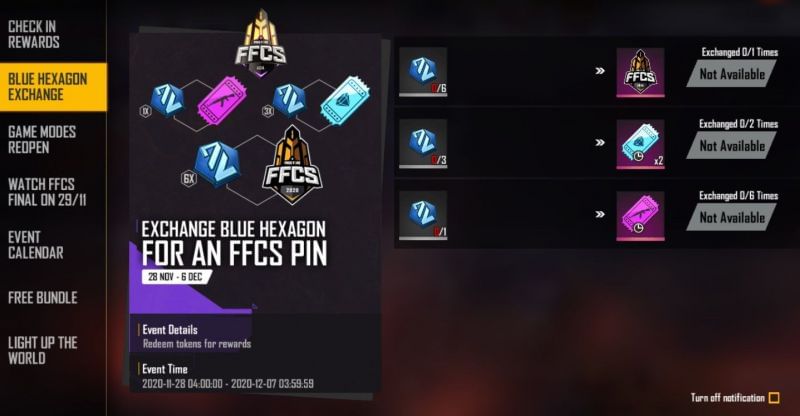 Receiving the Blue Hexagon Token in Garena Free Fire