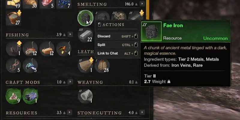 Take that pickaxe and get ready for some hard work. For Fae Iron, you'll simply have to mine iron veins. The resource is extremely rare, however, meaning there is only a small chance you'll be given anything other than regular iron.