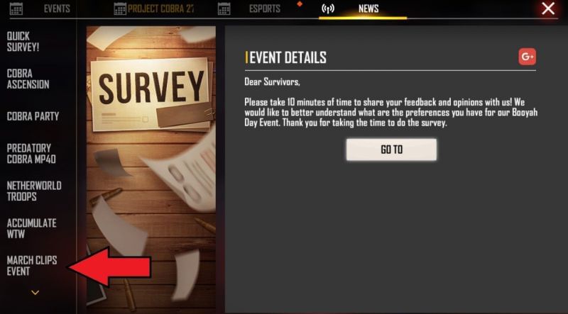 How to access the event in Free Fire