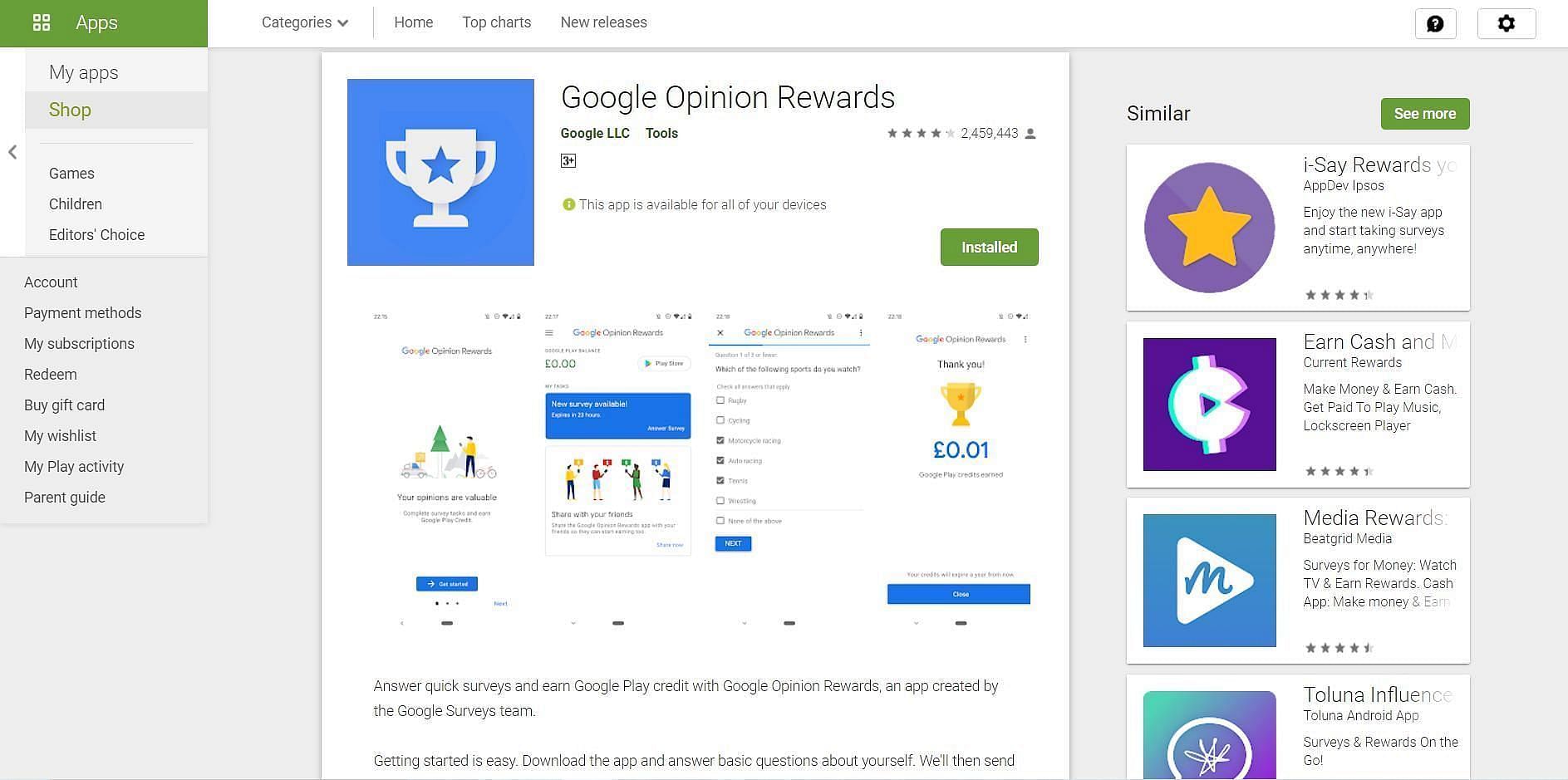 1) Google Opinion Rewards: