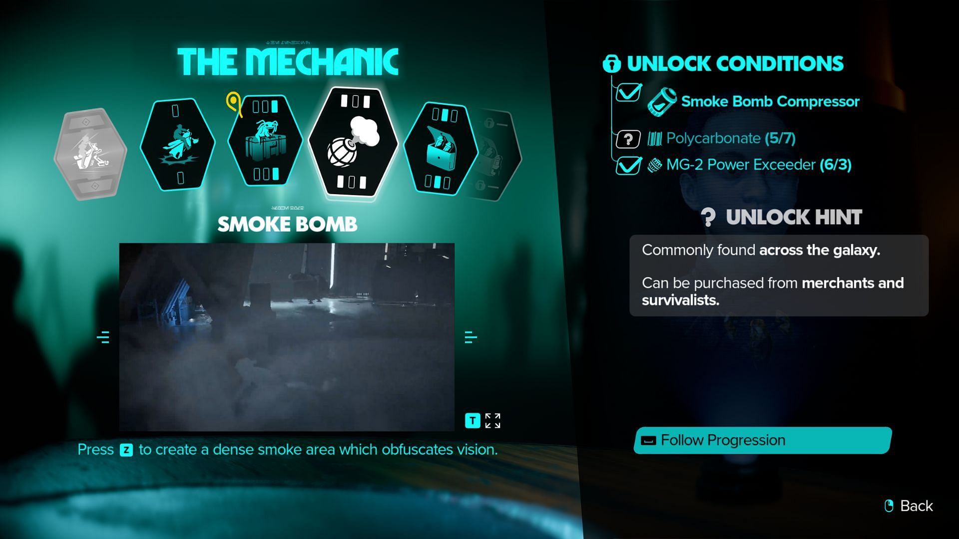 If you already have the required amount of Polycarbonate and MG-2 Power Exceeder in your inventory, simply open the Abilities Tab and go to The Mechanic skill tree. Here, you can unlock the Smoke Bomb ability and use it anywhere while driving your Speeder in Star Wars Outlaws.