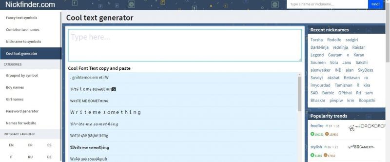 Step 1: Open the ‘Cool text Generator’ on Nickfinder. You can also click here to do so.